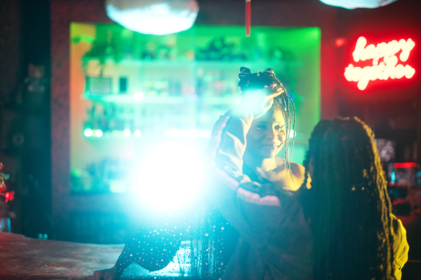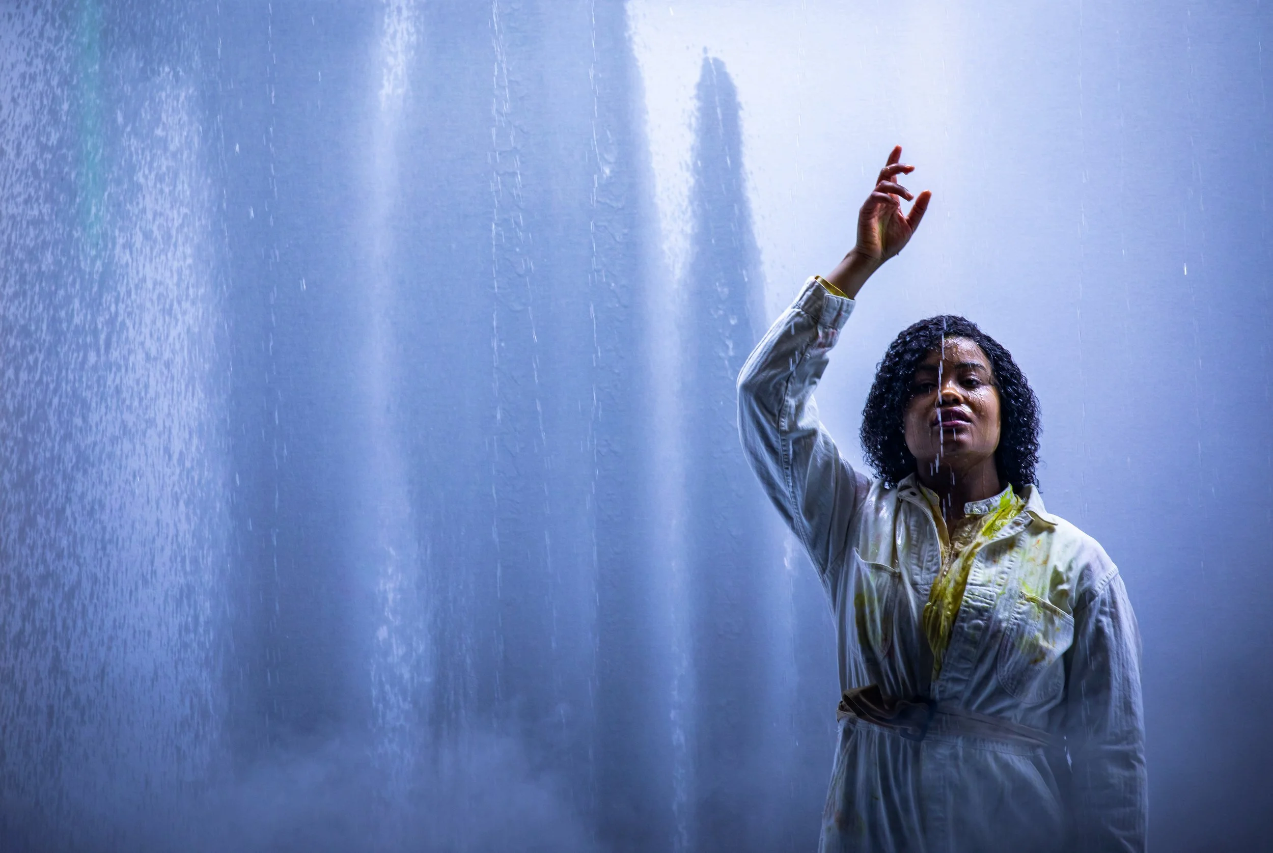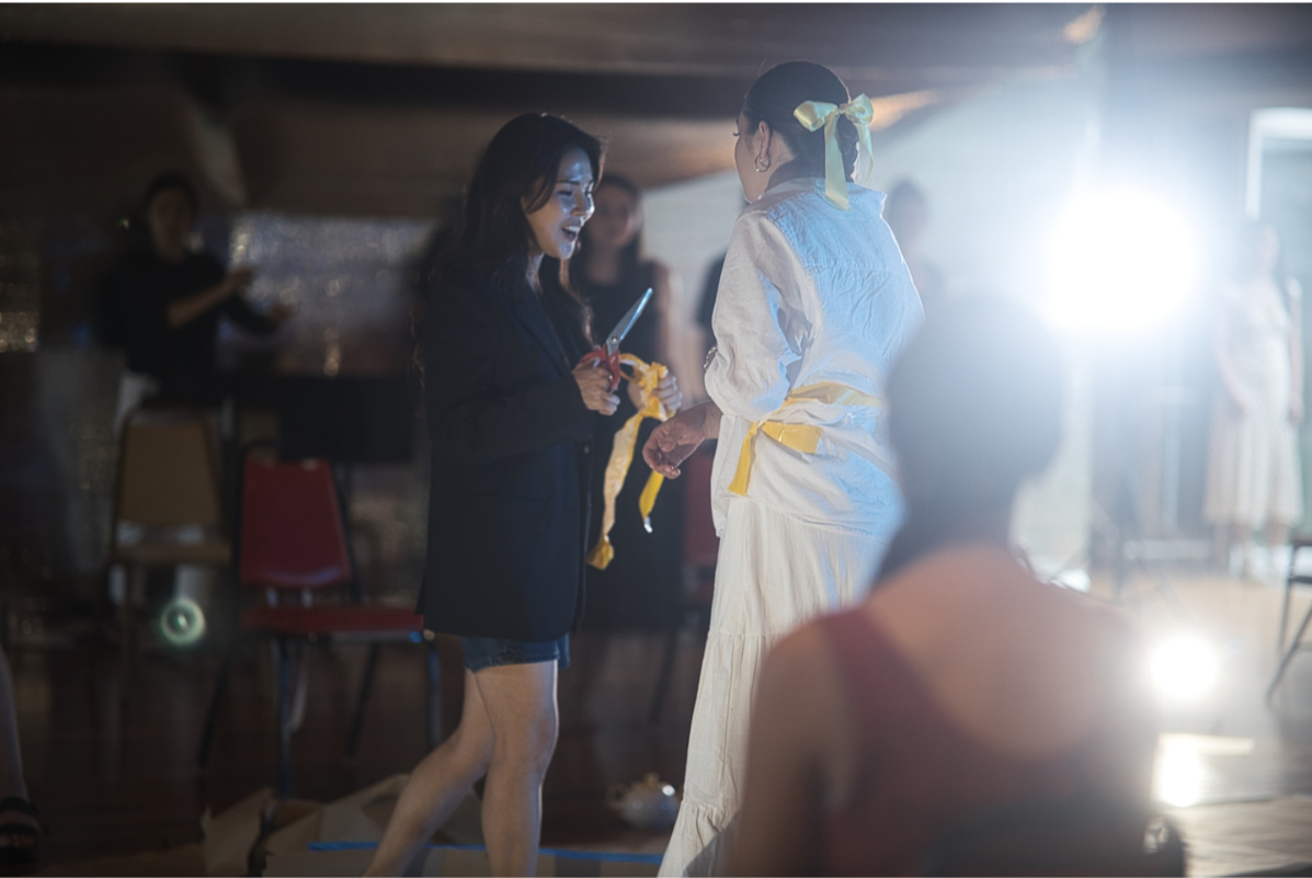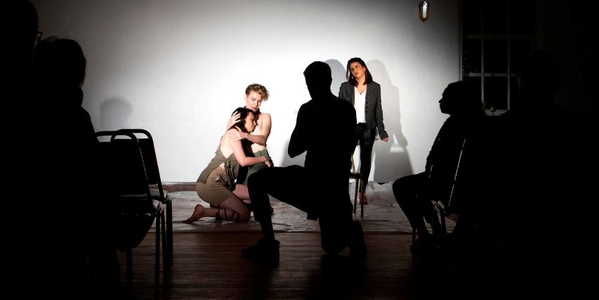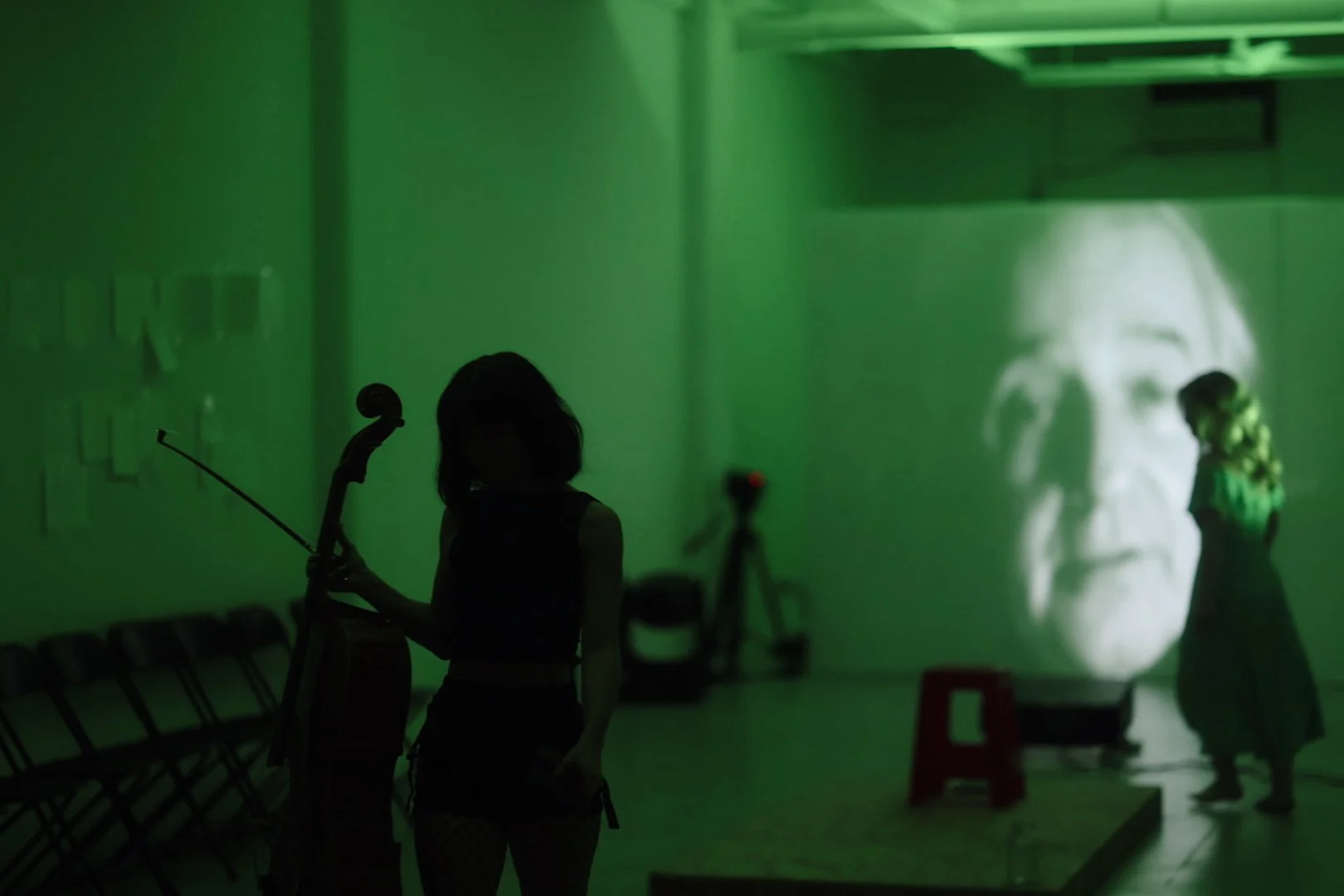 “VERY FERAL TODAY” (2025). 70 minutes. Performance installation / staged concert. light, sound, space, pre recorded audio, live speaking, wall text. created and performend by Duo Étrange, Marcus Shields, Frank Oliva. June 2025. Marcus Shields/ Frank Oliva/ Sahara von Hattenberger/ Vanessa Croome. Gallery 311, West Chelsea Building.