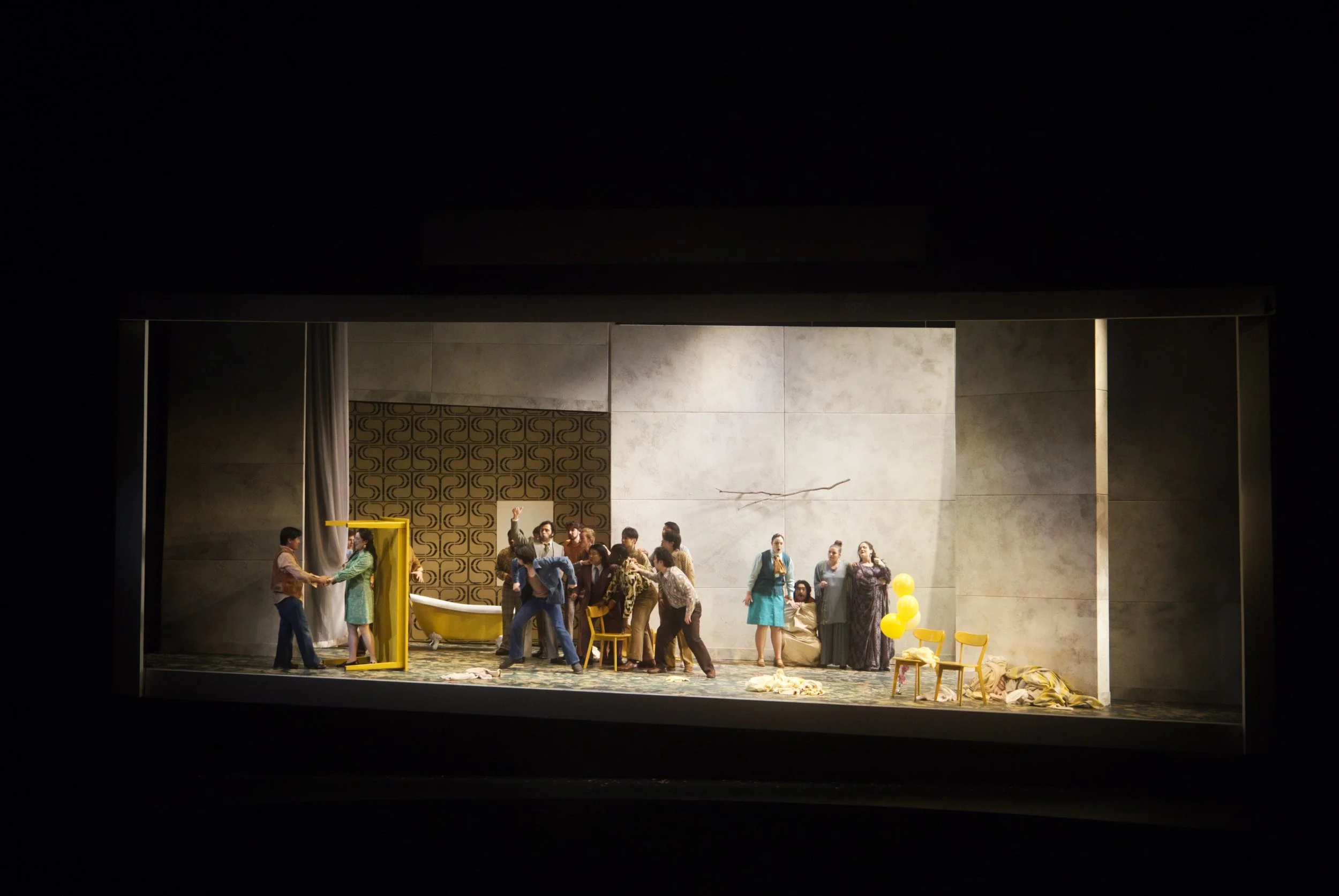 Falstaff, like Figaro, is tightly wound around story. Within our aesthetic frame, we worked to tell that story clearly. Some mechanics are adjusted, mostly for reasons of logistics and clarity rather than explicit interpretation.